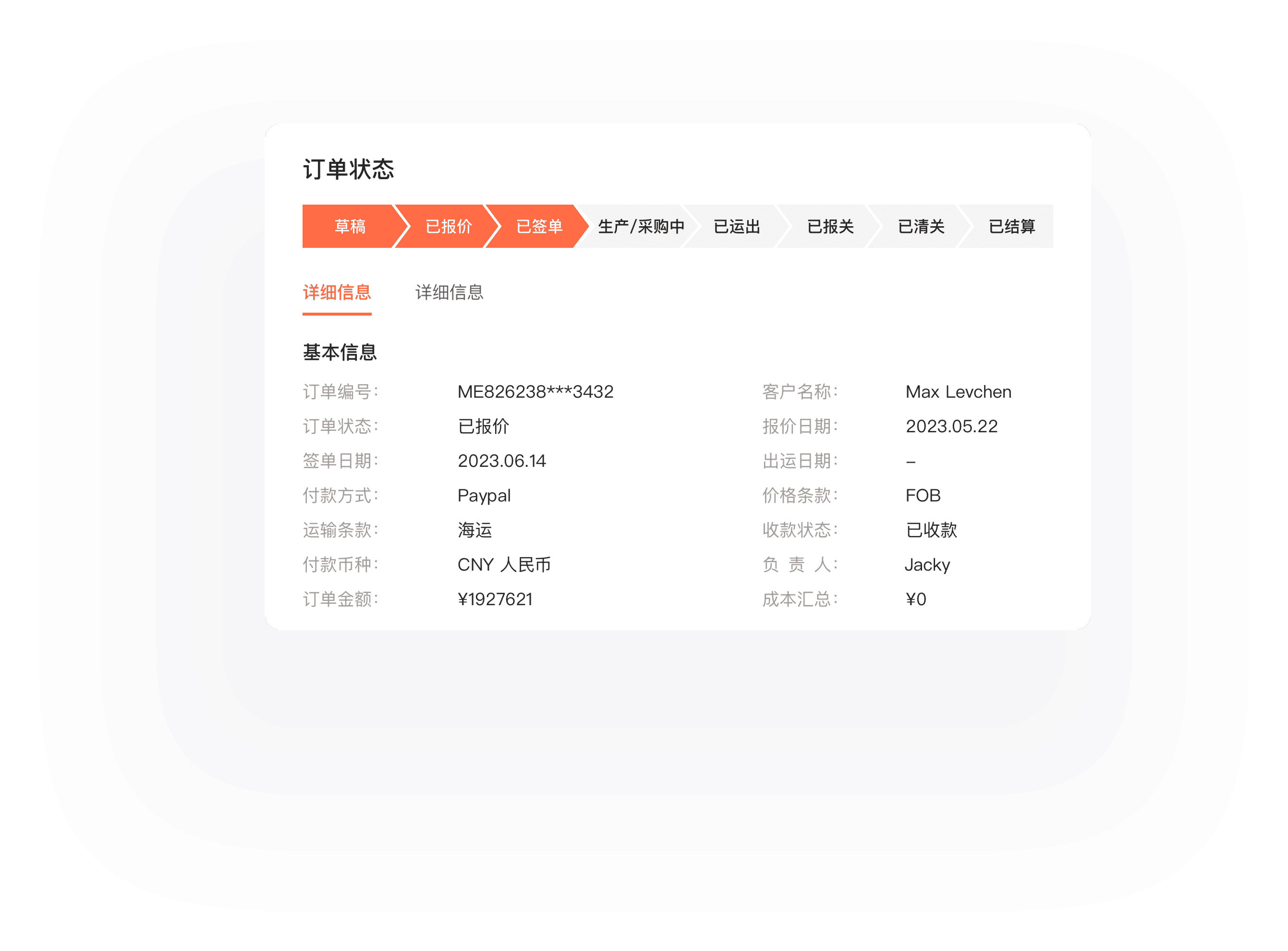 根据订单状态分类管理,掌握跟进进度,保障及时交付,跟单情况更清晰