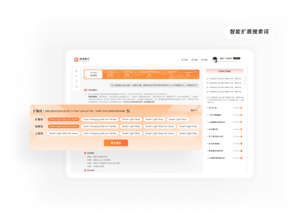 输入产品关键词,AI自动扩展上下游及关联行业,发现隐藏商机。