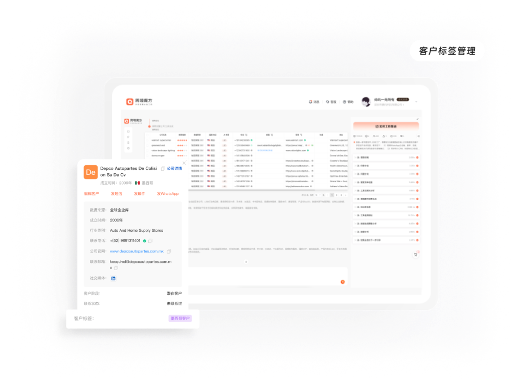 2. 同步存入CRM,标签标记为美国LED客户、首次跟进。
