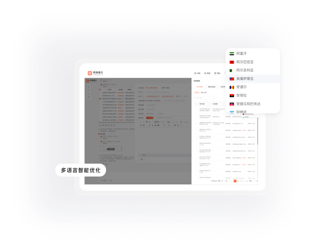 近10种语言优化和翻译,适配不同国家表达习惯,回复率提升75%。
