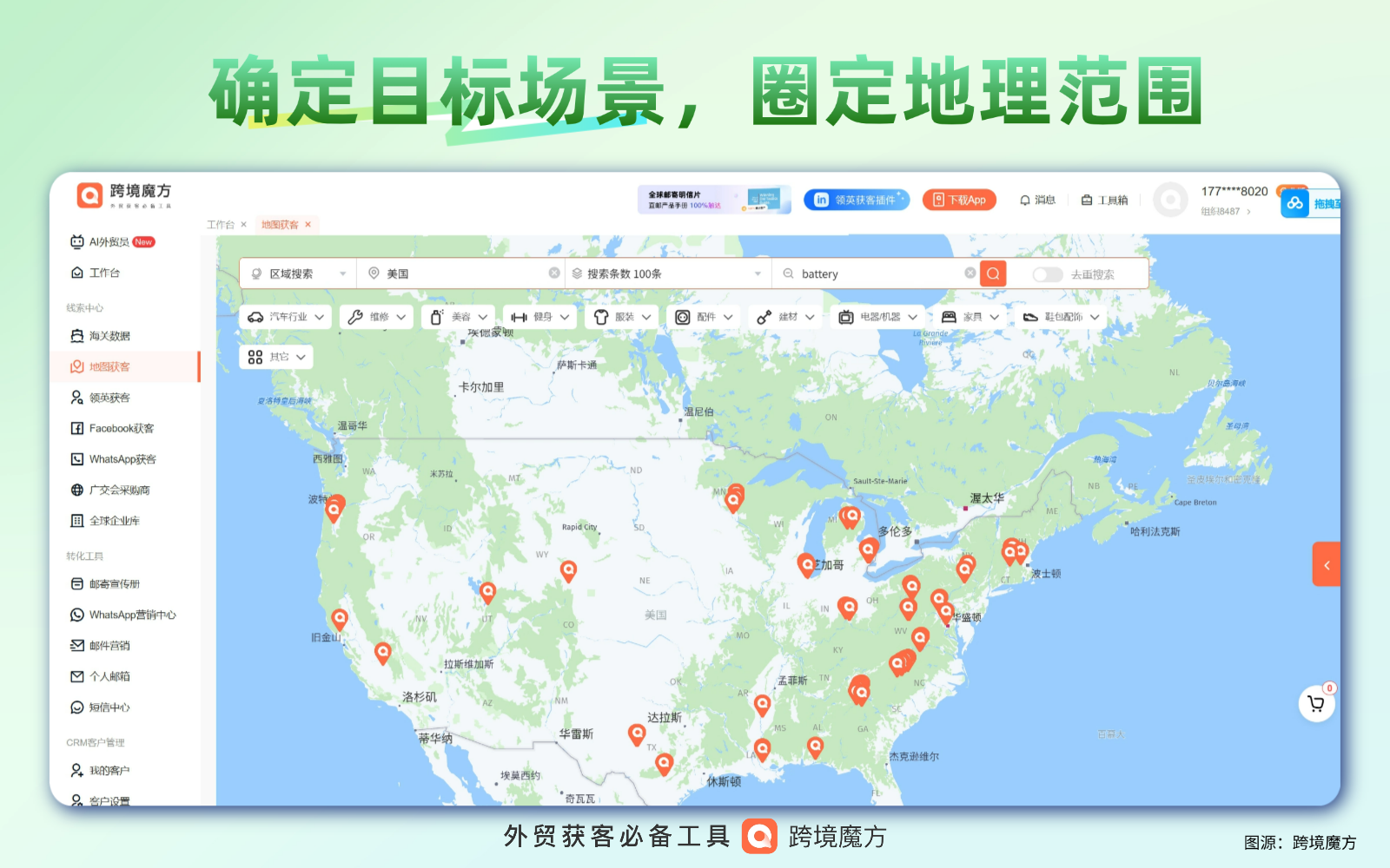 跨境魔方地图获客:电池外贸精准锁定全球采购商