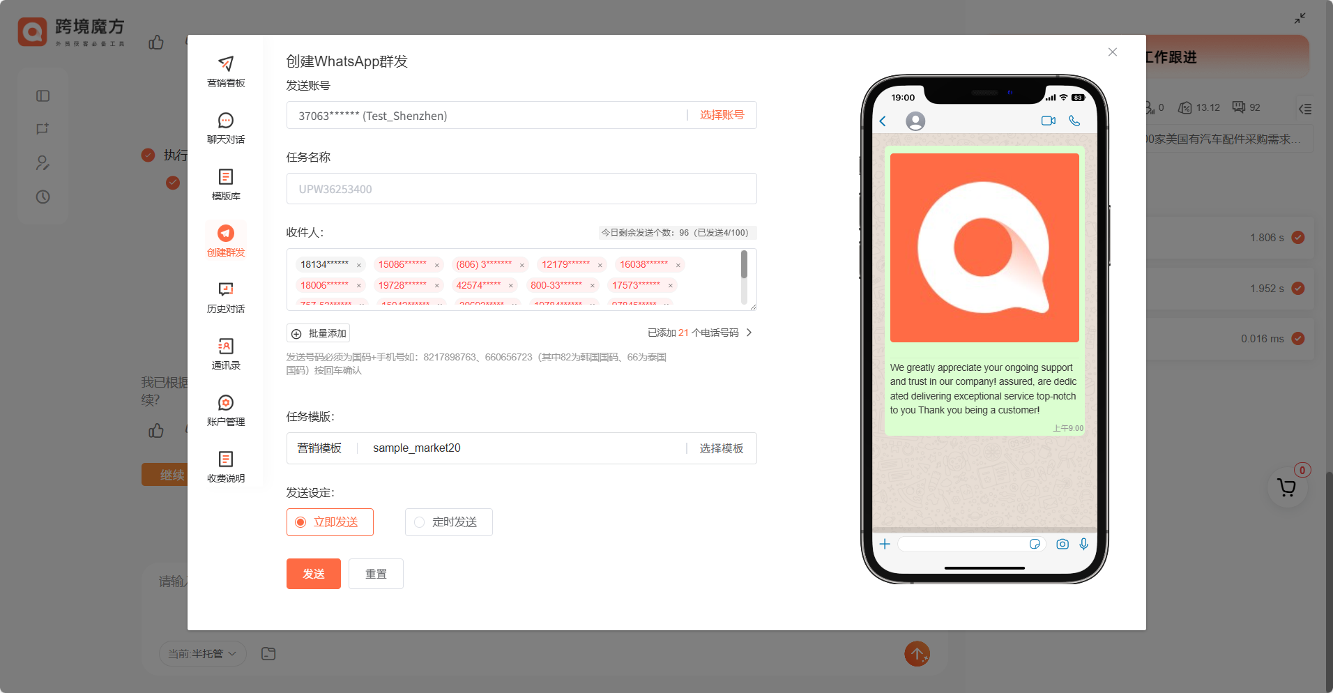 你可以在WhatsApp群发界面,选择你想要发送的营销模板。