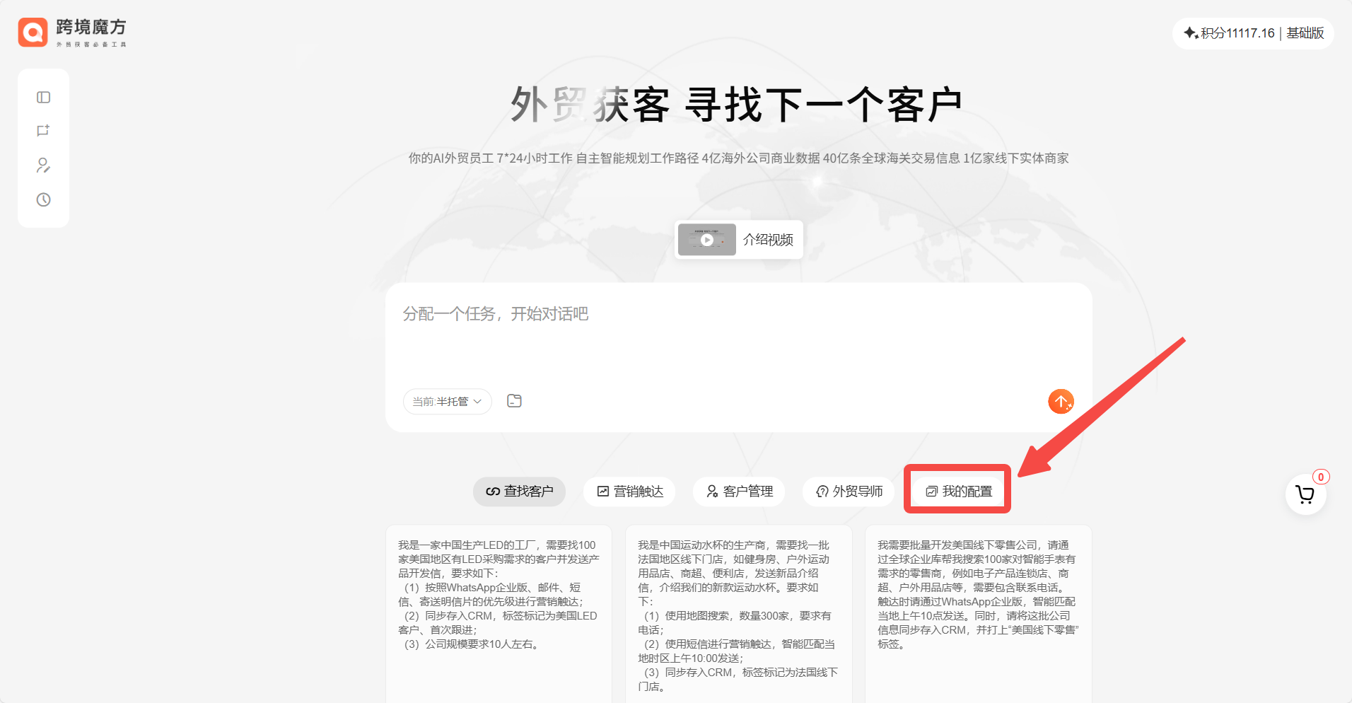 在【我的配置】中完成获客任务清单的配置,确保AI 外贸员自动开发到客户,都是你的精准客户