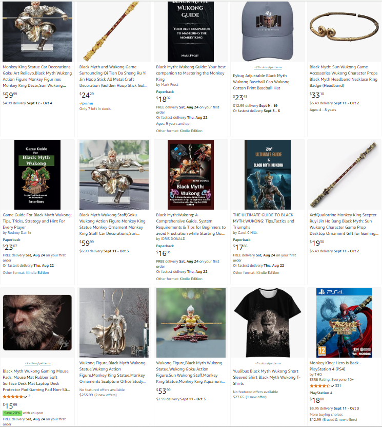 《黑神话:悟空》大火,亚马逊卖家火速开卖周边产品!