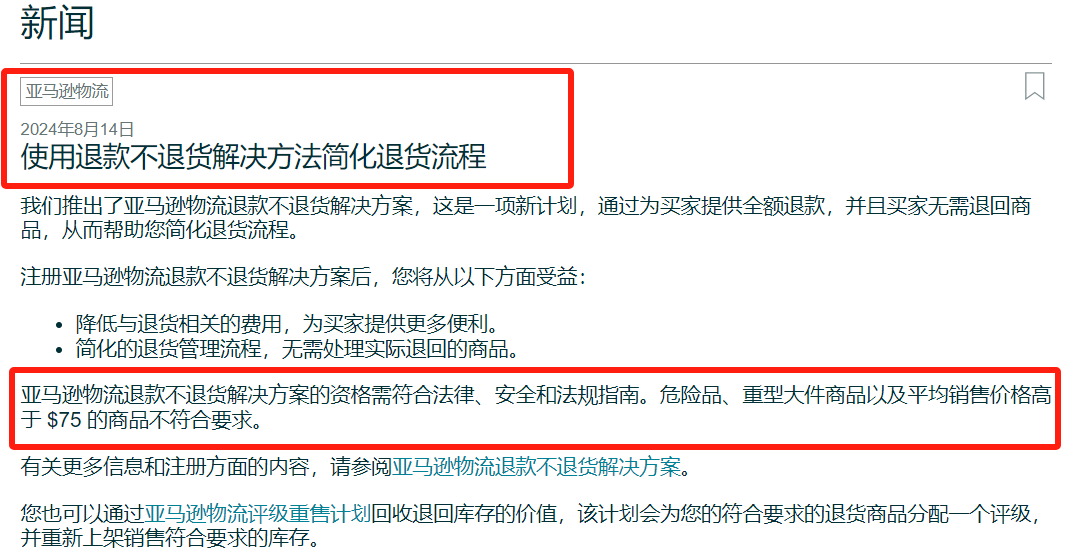 亚马逊美国站近日发布了一则重要通知,推出了亚马逊物流退款不退货解决方案,旨在简化退货流程,为买家提供更便捷的服务。