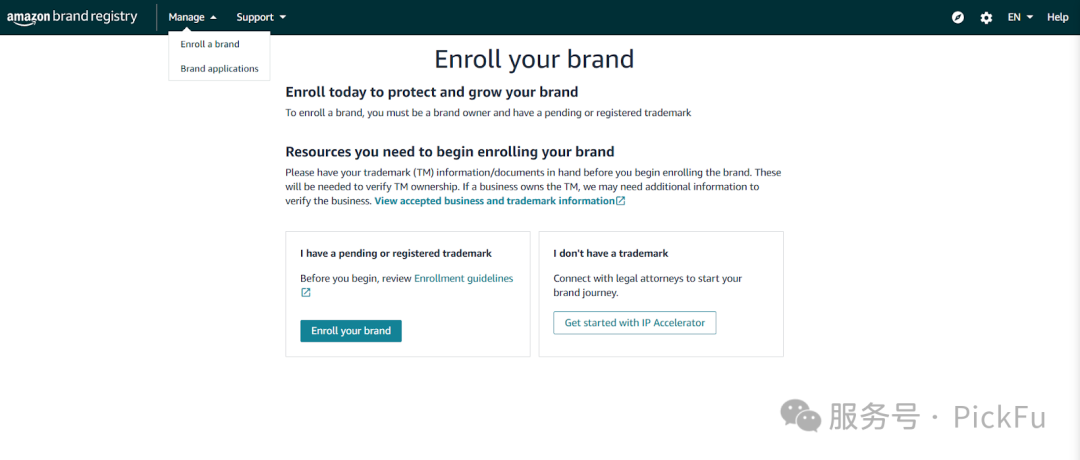 然后,加入“品牌备案”计划。你需要拥有你的品牌所有权或官方代表你的公司。加入后你将立即拥有“品牌备案”账户的访问权限。