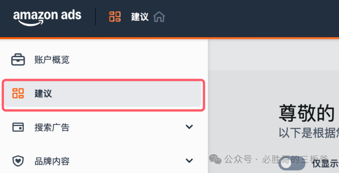 路径:广告 → 广告活动管理 → 建议