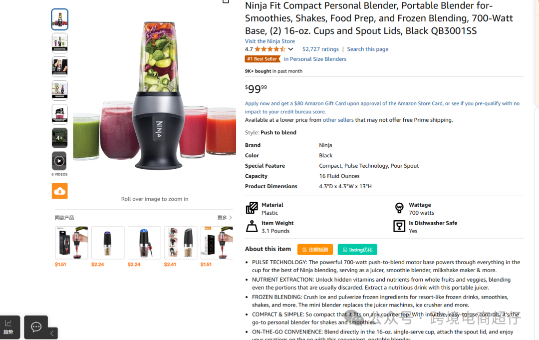 在个人尺寸搅拌机类目中排名(1)——厨房和餐饮类目中排名(34)