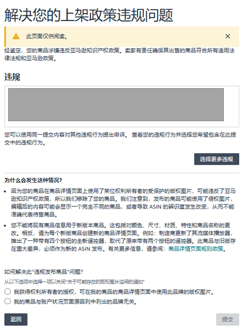 这里需要特别提醒卖家,如果被判定为版权图片滥用违规,亚马逊是不接受卖家以更换商品图片的方式进行申诉的。