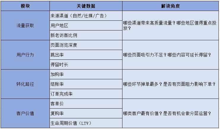 若复购率偏低 → 分析首次购买体验、售后流程与营销节奏是否断档