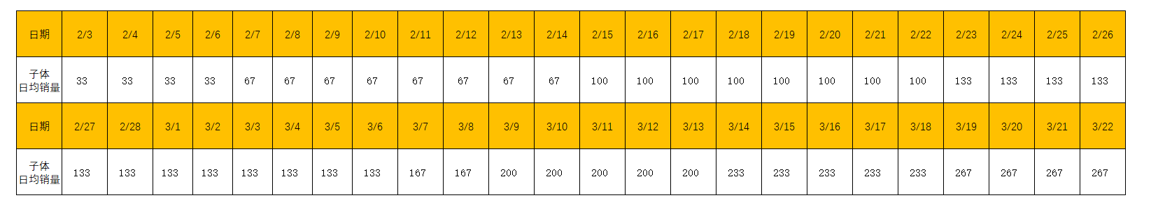 ○ 子体销量呈现指数级增长(825→9000),符合增长期特征