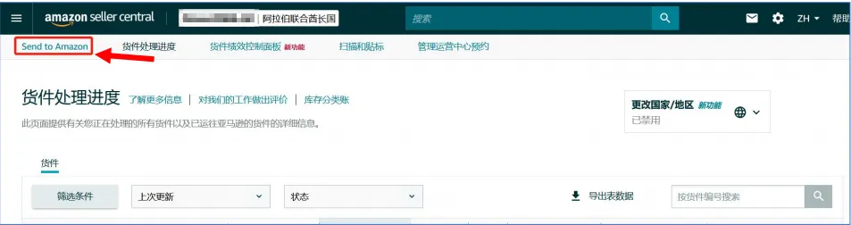 STEP1:登录亚马逊卖家后台→选择【目标卖家平台】→左上角将会出现下拉菜单,选择阿联酋
