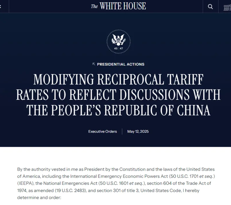 5月13日消息,白宫官网发布特朗普修正行政命令,对价值低于800美元的小额包裹关税进行重大调整,从价关税税率从120%降至54%,同时维持每件100美元的从量关税,并撤销6月1日将从量关税从100美元提高至200美元的计划。以上调整适用于所有自中国大陆、中国香港及中国澳门进口进入美国关税区、用于消费的商品,或自仓库提取用于消费的商品。